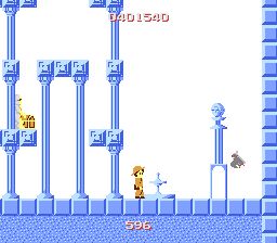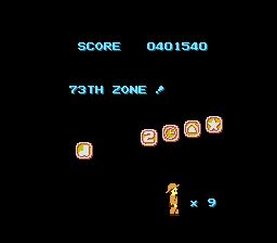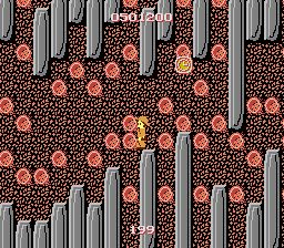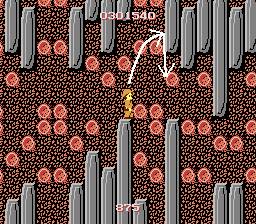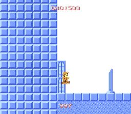 ブロックでできた小さな足場規則的に続くゾーンです。途中にあるゾーン66への扉からまたこのゾーンに戻ってきたときは下方に足場がないため、左右の中段にある足場に着地するべく、左右どちらかのキーを押しっぱなしにしておく必要があります。