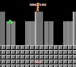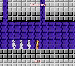 途中に天井の低い通路が非常に長く続くゾーンです。この通路ではジャンプができないため、敵を飛び越えることができませんので、すべて倒して進んでいくしかありません。タイムオーバーに注意しましょう。 なお、ジャンプ連打しながら進むことで敵の出現を減らすことができます。